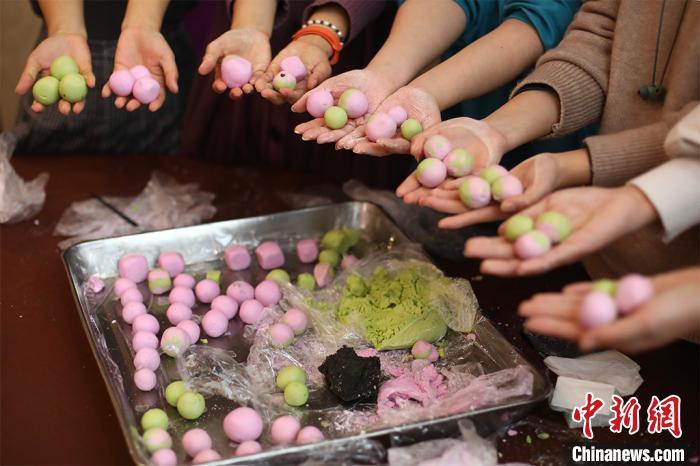 而在闽南地区,这种“冬至团”又被称作“冬节丸”或“冬节圆”。她介绍,冬至前夕,家家户户要“搓丸”。等到冬至早晨,先以甜丸汤敬奉祖先,然后全家再以甜丸汤为早餐。