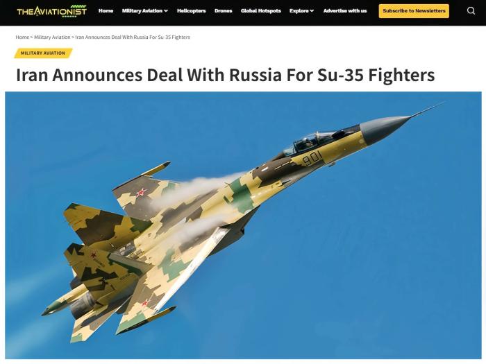《亚洲时报》指出,除了隐身性能稍弱,苏-35的火力、机动性和作战半径,并不逊于包括F-35在内的以色列现役战机。