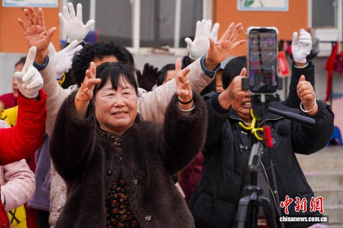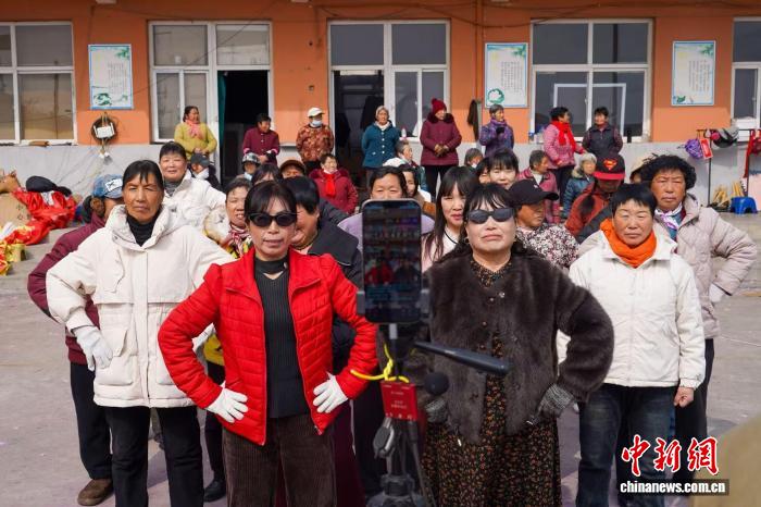 3月7日,林州姚村镇军营村积雪未消。一处闲置院落内,20多位农村大妈跟随音乐节奏跳起热情洋溢的舞蹈,同时回应着直播话题。当天下午,直播间在线人数最高峰时近4500人。