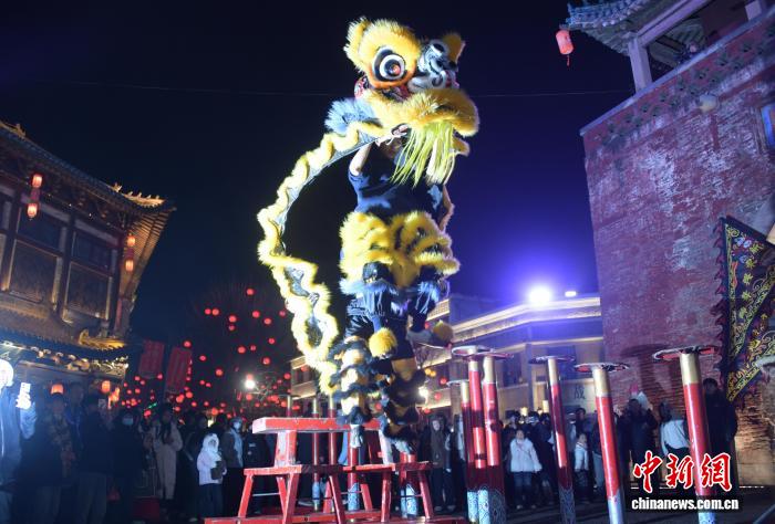2月22日是农历正月初六,拥有1600余年历史的浚县古庙会年味正酣。锣鼓声穿透古城街巷,舞狮队的年轻小伙扎紧红绸,狮头一甩便腾跃而起,气势十足。不远处,少年们画上脸谱、身着古装,踩着数尺高的木跷如履平地,单脚点地、旋转跳跃等惊险动作引来惊呼。竹马演绎者手持缰绳,在“走马灯”“龙摆尾”的队形间与观众亲切互动……数十支社火表演团队拿出看家本领,你方唱罢我登场,热闹非凡。