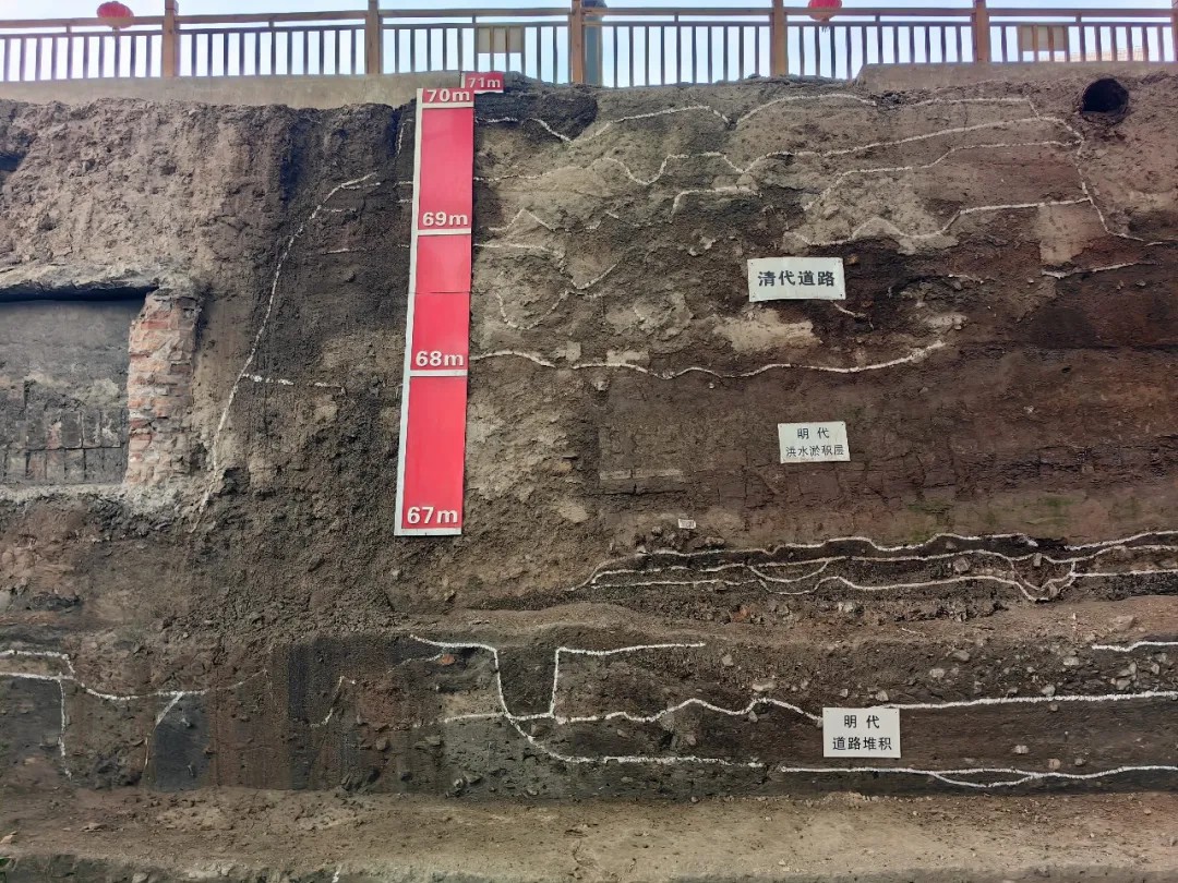 这些清晰的地层堆积,直观地再现了开封民间口口相传的“开封城,城摞城、路摞路、桥摞桥”,也是开封城市中轴线宋金以降千年传承的铁证。