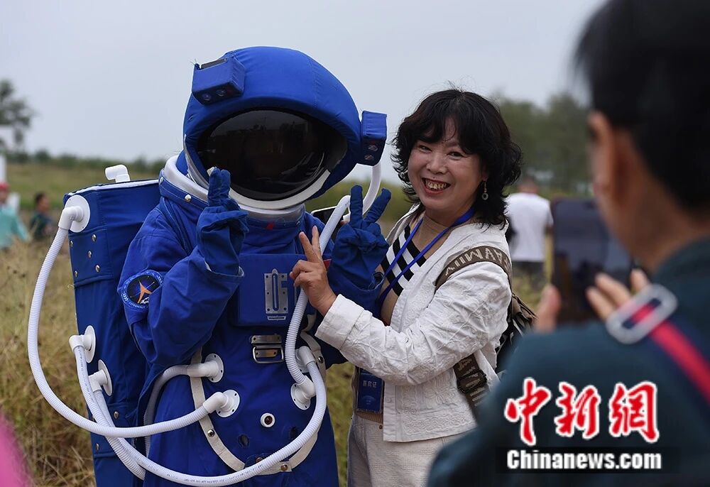 摄影爱好者早早架起“长枪短炮”,对准海平面上的发射船,等待捕捉火箭点火升空的震撼瞬间;遍布观礼区的航天主题标语打卡点前,游客排队合影;身着“宇航服”的人偶穿梭在人群中互动,当地特色海阳大秧歌热闹助兴;文创展区里,航天主题冰箱贴、剪纸、文具,以及精巧的火箭模型、拼图等近千种文创产品琳琅满目。