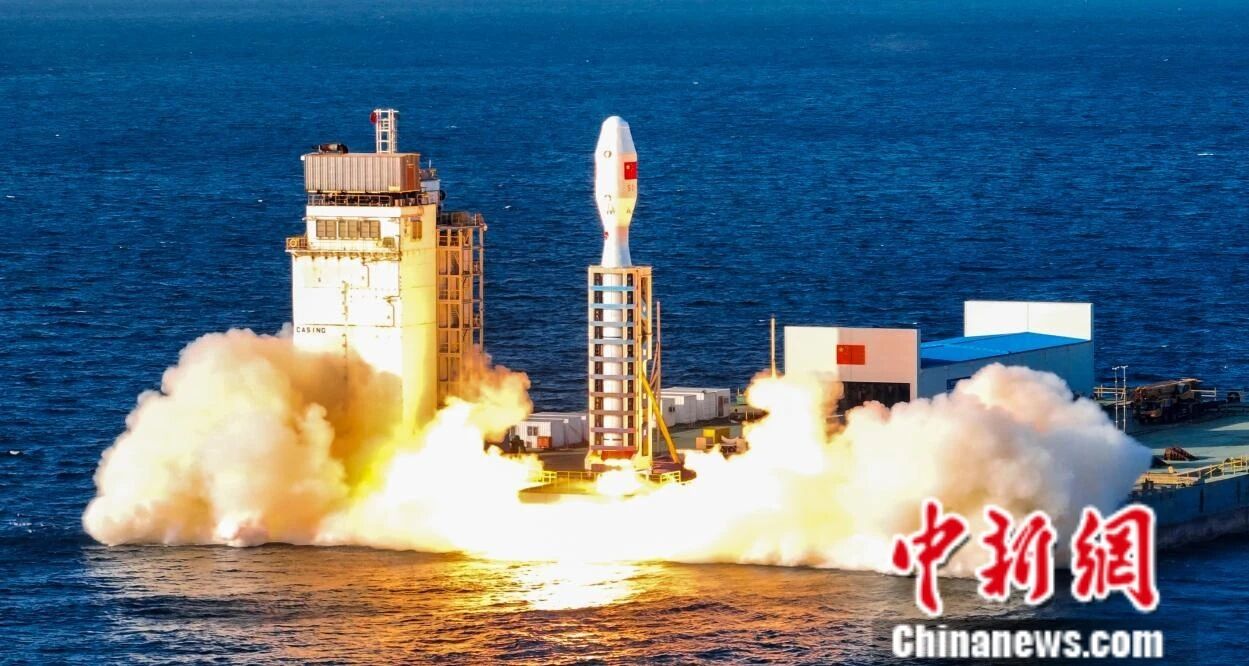 2025年10月11日,引力一号遥二运载火箭以“东方航天港”号发射船为平台,在山东海阳附近海域发射升空,将吉林一号宽幅星,数天宇星01、02试验星共3颗卫星送入预定轨道。