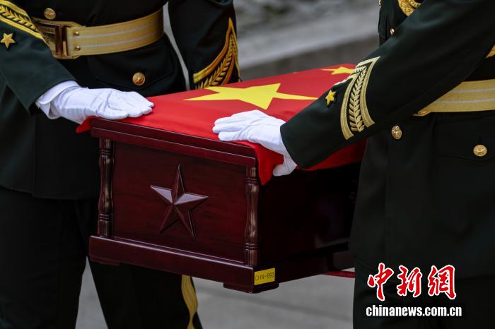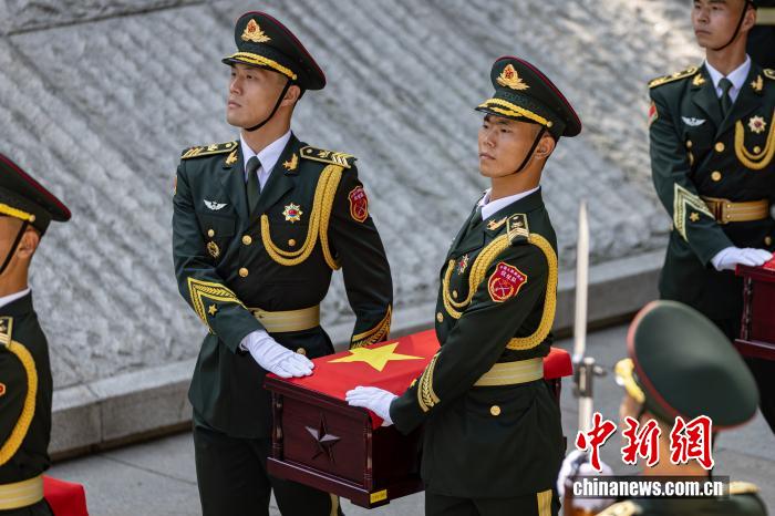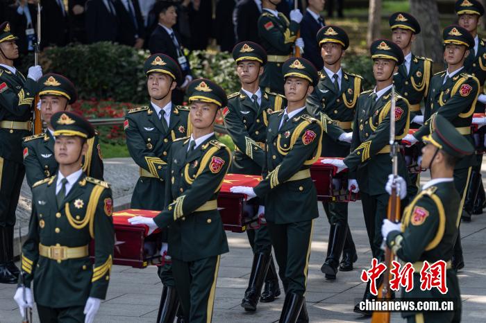 中新网沈阳9月13日电(王昊 徐峻杰 王涵 韩浩天)“血性铁骨,轻身奋战。捷报迭传,河岳重晏。”9月13日上午,第十二批在韩中国人民志愿军烈士遗骸安葬仪式在沈阳抗美援朝烈士陵园举行,祭文中如此描述先烈们保家卫国的英雄事迹。