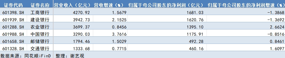 作为“宇宙行”,工商银行上半年营收、净利润仍稳居首位,实现营业收入4270.92亿元,归属于母公司股东的净利润1681.03亿元。不过营收“增速王”则花落中国银行,增速达3.76%;利润增速最高的为农业银行,增速为2.66%。