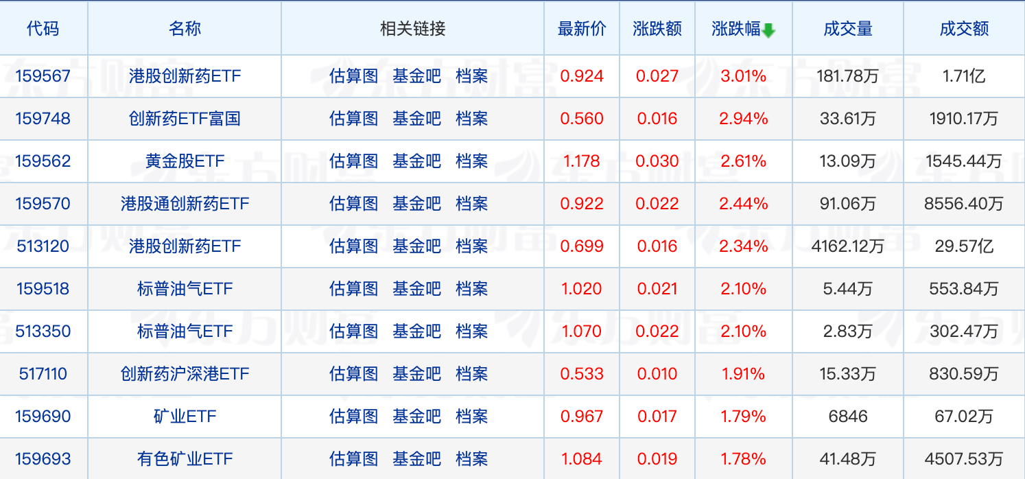 具体来看,医药股开盘走强,创新药方向领涨,泰格医药、昭衍新药、赛隆药业等涨停。受此带动,创新药ETF反攻,最高涨3.01%。