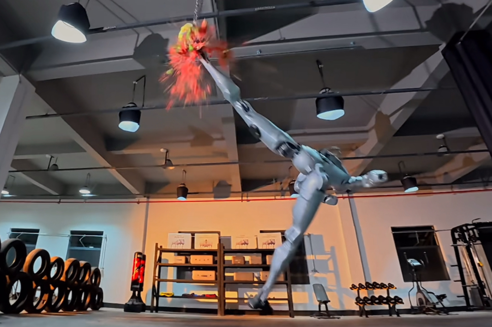 武术界素有“未学打人,先学挨打”之说。到了去年12月,众擎机器人已经能“一脚踹倒”自家CEO。在今年1月的演示中,宇树机器人凌空跃起,一记回旋踢将西瓜踢得粉碎,并且单脚发力踢动了120斤的沙袋。有网友评论:“看到这场面就害怕,万一哪天发怒了,后果不堪设想。”