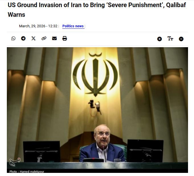 卡利巴夫警告说,伊朗军队已做好应对此类情况的准备,并将果断予以反击。他强调,伊朗绝不会接受等同于投降的要求,并将坚持既定方针直至取得胜利,并补充说,这场冲突的结果将成为未来任何侵略者的永久教训。
