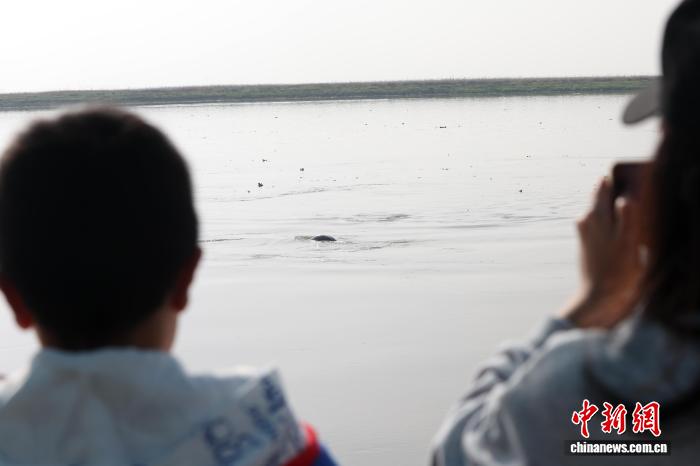 “妈妈,快看!快看!那里又有两头江豚。”11岁男孩拉着妈妈的手臂,指向水面。