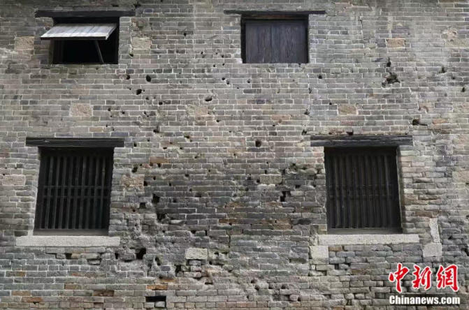 锈迹斑斑的机枪、布满弹孔的城墙砖,