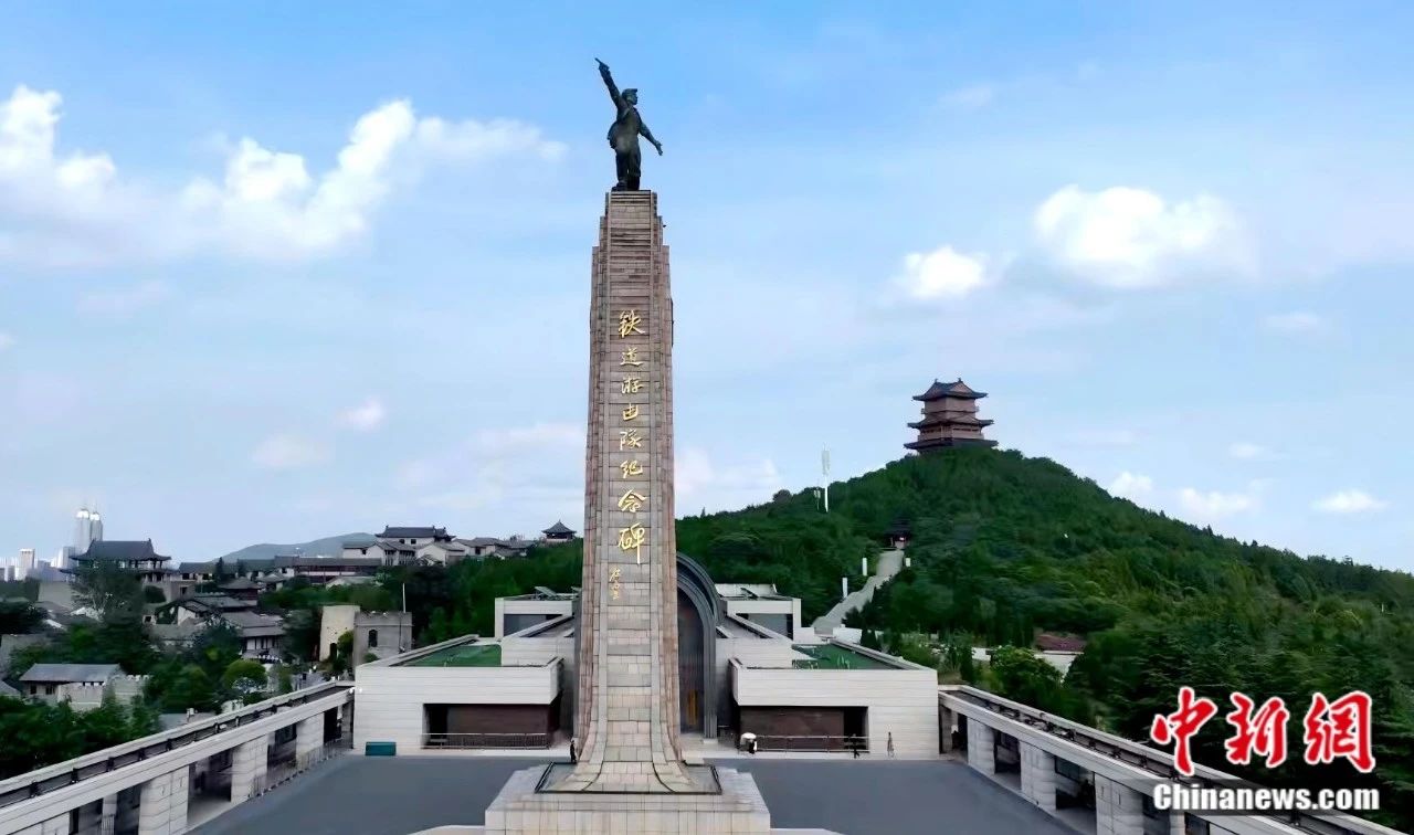 “铁道游击队纪念碑”八个大字熠熠生辉。