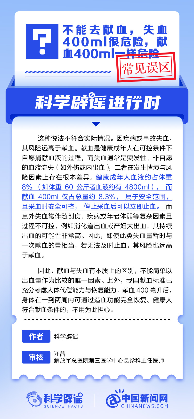中新网12月18日电 献血与意外失血有本质上的区别,欧博娱乐不能简单以出血量作为比较的唯一因素。因疾病或事故失血,其风险远高于献血。献血是健康成年人在可控条件下自愿捐献血液的过程,欧博allbet而意外失血通常是突发性、非自愿的血液流失(如外伤或内出血),二者在发生情境与风险因素上存在根本差异。意外失血常伴随创伤、疾病或年老体弱等复杂因素且过程不可控,例如消化道出血或产妇大出血,持续出血的可能性非常高。(来源:@科学辟谣 中国新闻网微博)