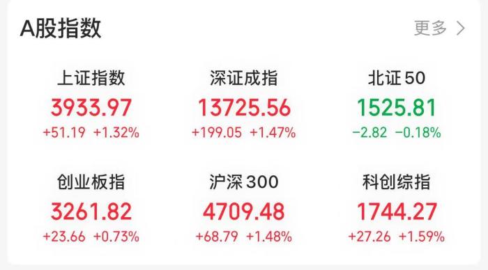 截至收盘,上证指数涨1.32%报3933.97点,续创10年新高;深证成指涨1.47%报13725.56点;创业板指涨0.73%报3261.82点。全市场成交额超2.6万亿元,欧博百家乐较前一交易日大幅放量。