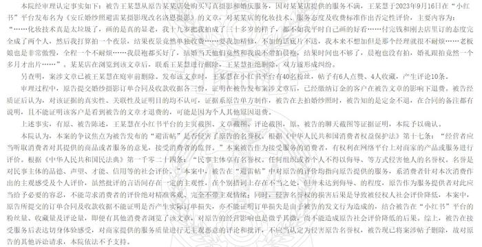在安丘市某摄影店诉王某慧名誉权纠纷一案((2024)鲁0784民初1435号)中,山东省安丘市人民法院认定消费者在服务不满后发布“避雷帖”,虽然措辞存在主观性,但系基于真实消费体验,未达到侮辱程度,不构成名誉侵权。