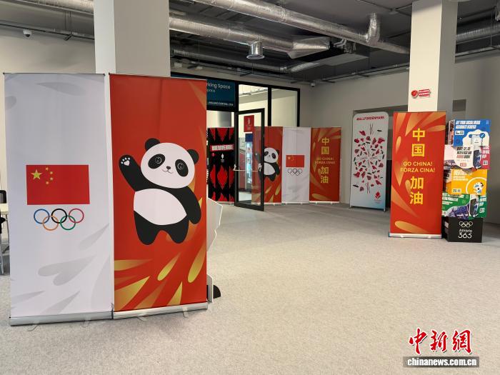 当地时间2月3日,米兰冬奥村举行媒体开放日。中新社记者在中国代表团驻地看到,大楼玻璃窗外张贴了多张伸出手臂的大熊猫图案,仿佛正向过往的运动员热情致意。大楼内部同样处处可见大熊猫元素装饰,吸引众人目光。