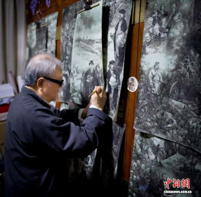 中新社上海2月8日电 题:著名国画家戴敦邦:水墨线条绘中西