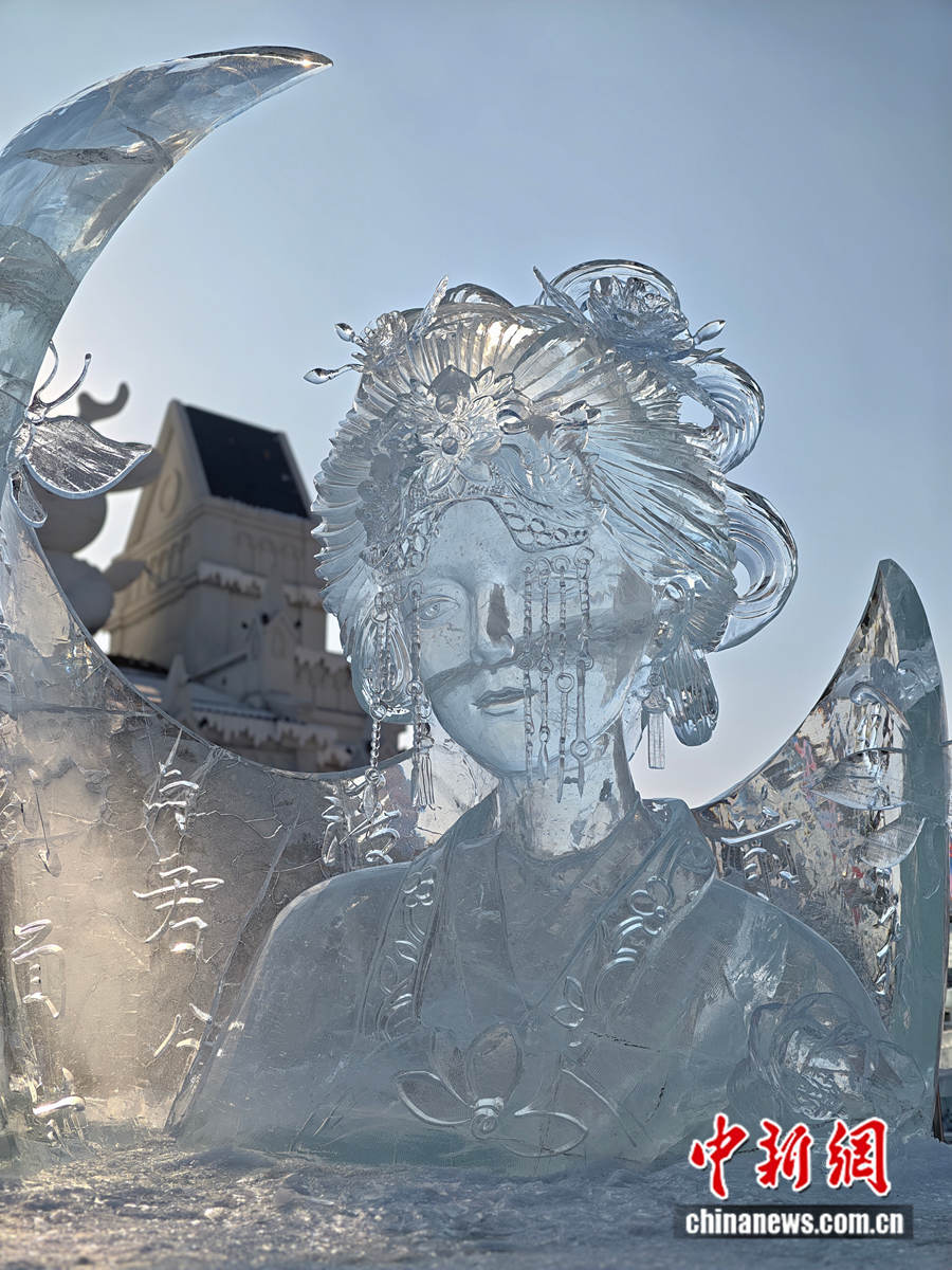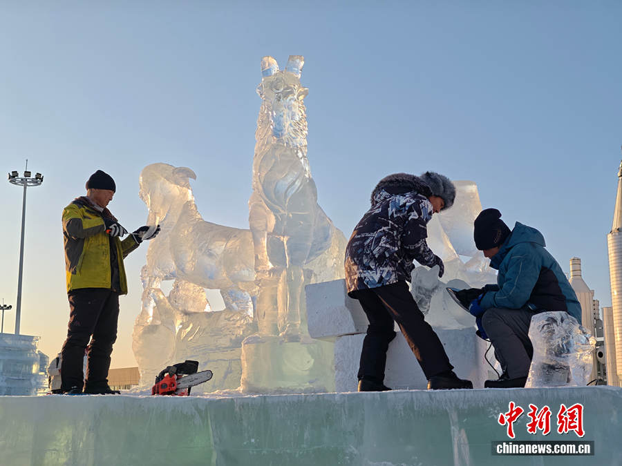 中新网2月19日电(记者 任思雨)长春冰雪新天地里,游客们在一座座精美的冰雕前停留,寻找着最佳拍摄角度。不远处,还有一群人正以冰为纸、以刀为笔,埋头打磨着待完成的作品。