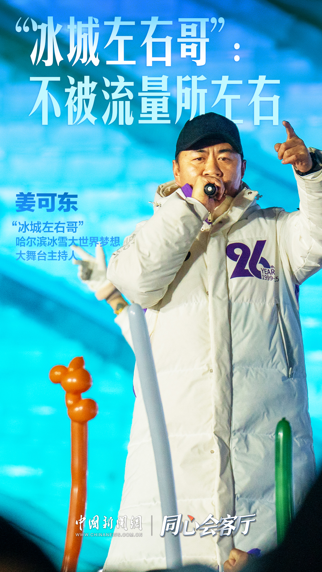 姜可东:王老师,过年好!中新网的各位网友朋友们,冰天雪地欢乐多,我是“冰城左右哥”,大家过年好!这里是太阳岛雪博会,很多人不知道我白天在这里还有演出。