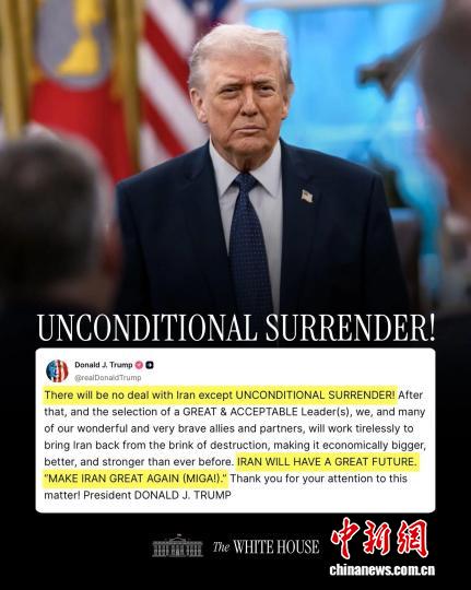 美国总统特朗普当地时间6日在社交平台称:“除了无条件投降,不会与伊朗达成任何协议!”“让伊朗再次伟大!”