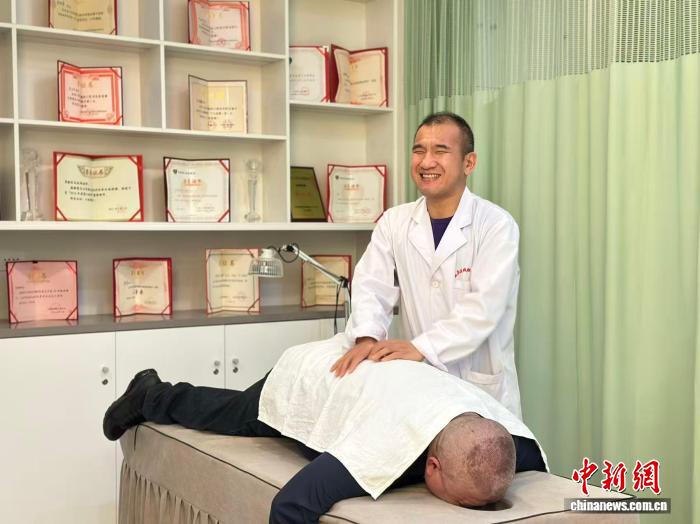 中新网兰州4月7日电 (闫姣 石娇艳)在兰州市城关区残联盲人按摩服务中心的一间工作室里,欧博allbet盲人按摩师马述靖熟练地为一位老顾客按压肩颈,他的手沉稳而有力,脸上带着专注温和的神情,背后是他满墙的荣誉。