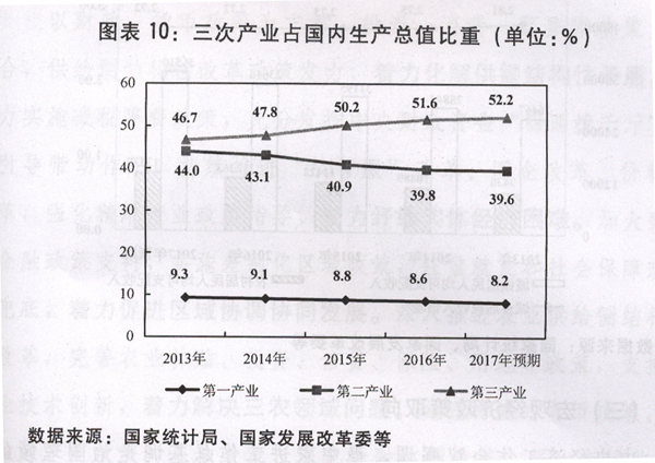 五是服务业创新发展稳步推进。落实加快发展生产性服务业、生活性服务业的两个指导意见,服务业领域放宽市场准入实施规划出台,新一轮服务业综合改革试点启动。安排服务业发展引导资金,支持163个公共服务平台建设。第三产业增速继续超过第二产业,增加值占国内生产总值的比重提高到51.6%。