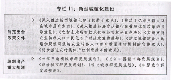 三是新型城镇化建设稳步推进。农业转移人口市民化步伐加快,户籍制度改革意见、居住证制度以及人地挂钩、支持农业转移人口市民化财政政策等关键性配套政策出台,全年进城落户人口达1600万人,常住人口城镇化率达到57.35%,户籍人口城镇化率达到41.2%。城市群规划建设有序推进,支持武汉、郑州建设国家中心城市。在全国开展新生中小城市和特色小(城)镇培育,国家新型城镇化综合试点范围扩大到2个省246个城市(镇)。61个中小城市综合改革试点取得积极成效。