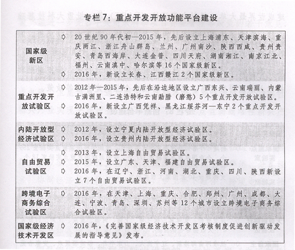 二是区域发展总体战略和差别化区域政策深入实施。加快新一轮西部大开发,一批重大标志性工程开工建设,中西部地区经济继续保持较快增长。出台实施新一轮东北振兴战略和若干重大政策举措,国企改革、投资营商环境改善等重点领域改革取得新进展。明确中部地区“一中心、四区”重要战略定位,长江中游城市群重要增长极作用强化。东部地区转型升级、开放创新、陆海统筹优势持续发挥,欧博娱乐区域发展新动能新亮点不断涌现。出台促进区域协调发展的指导意见,差别化区域政策体系持续完善。国家综合配套改革试验区、国家级新区及各类开发区、承接产业转移示范区、产城融合示范区、临空经济示范区等重要功能平台建设有序推进。加快革命老区、民族地区、边疆地区和集中连片特困地区脱贫攻坚。完善支持政策措施,推进新疆、西藏、四省藏区经济社会发展和长治久安。