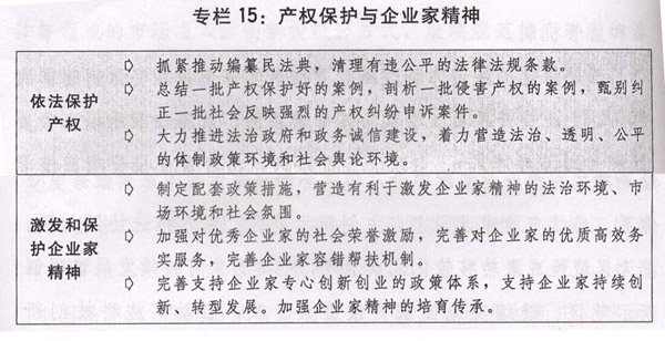 五是营造公平竞争市场环境。落实完善产权保护制度依法保护产权的意见,加强产权保护制度建设。激发非公有制经济活力,积极构建新型政商关系。出台实施激发和保护企业家精神的意见。全面实施公平竞争审查制度,坚决遏制出台新的排除限制竞争的政策措施。严厉查处重大典型垄断案件,预防和制止垄断行为。推进社会信用体系建设。建立全国一体化的信用信息共享体系,扩大守信联合激励和失信联合惩戒领域。