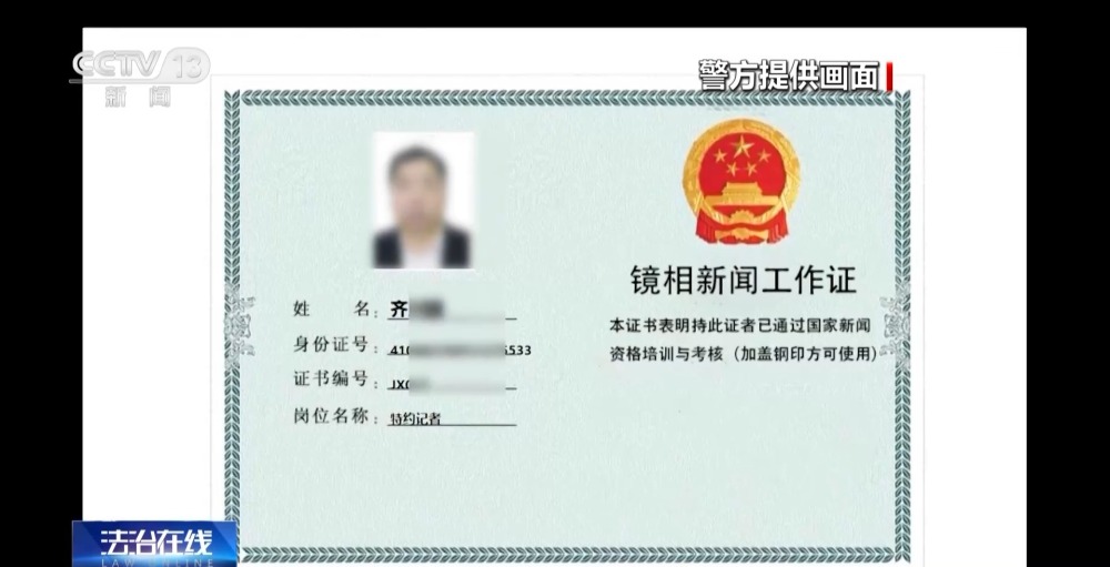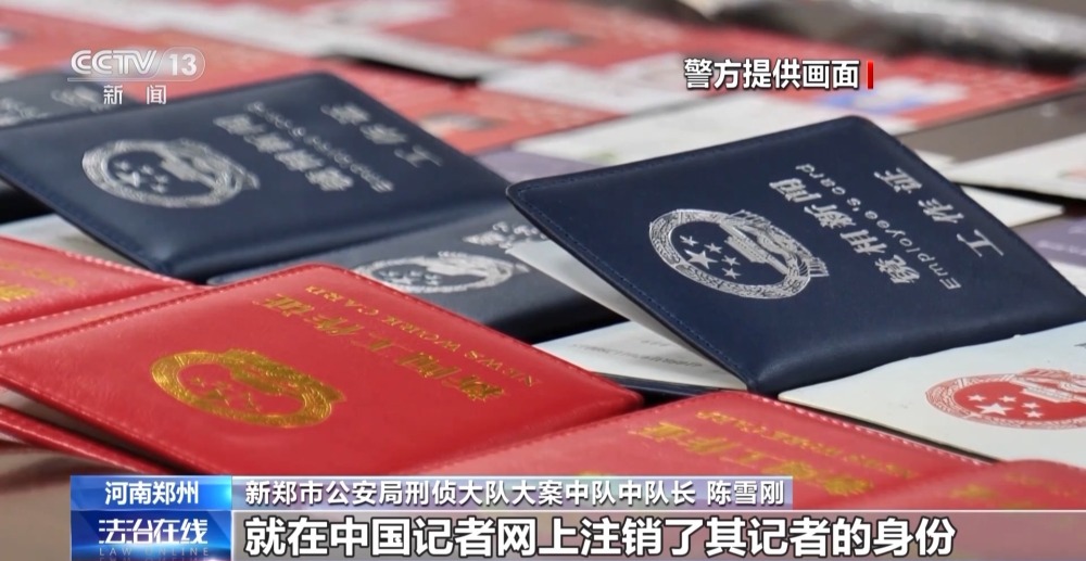 河南省郑州市新郑公安局刑侦大队大案中队中队长 陈雪刚:这个所谓的他们的记者证都是齐某某统一去制作的,制作的这种假的记者证、工作证,然后再给他们分发。他们用不同的身份去针对不同领域的企业,进行这种有针对性的敲诈勒索,诈骗的这种违法犯罪活动。