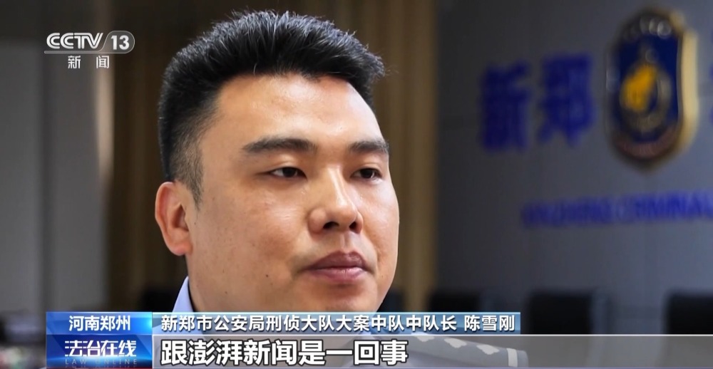 河南省郑州市新郑公安局刑侦大队大案中队中队长 陈雪刚:这个企业的负责人也说了,都没有听说过这个镜相新闻这个媒体,他们为了使其企业相信他们有这个能力,就谎称他们的这个镜相新闻跟澎湃新闻是一回事。