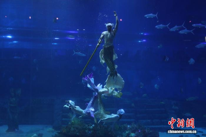 阿里介绍,欧博allbet他们暑期每天要完成5场演出,在纵深约8米、容纳5500吨海水的巨型水族缸中进行表演。表演时需巧妙避开鱼群,还要在水中完成挥手、翻转等各种动作。