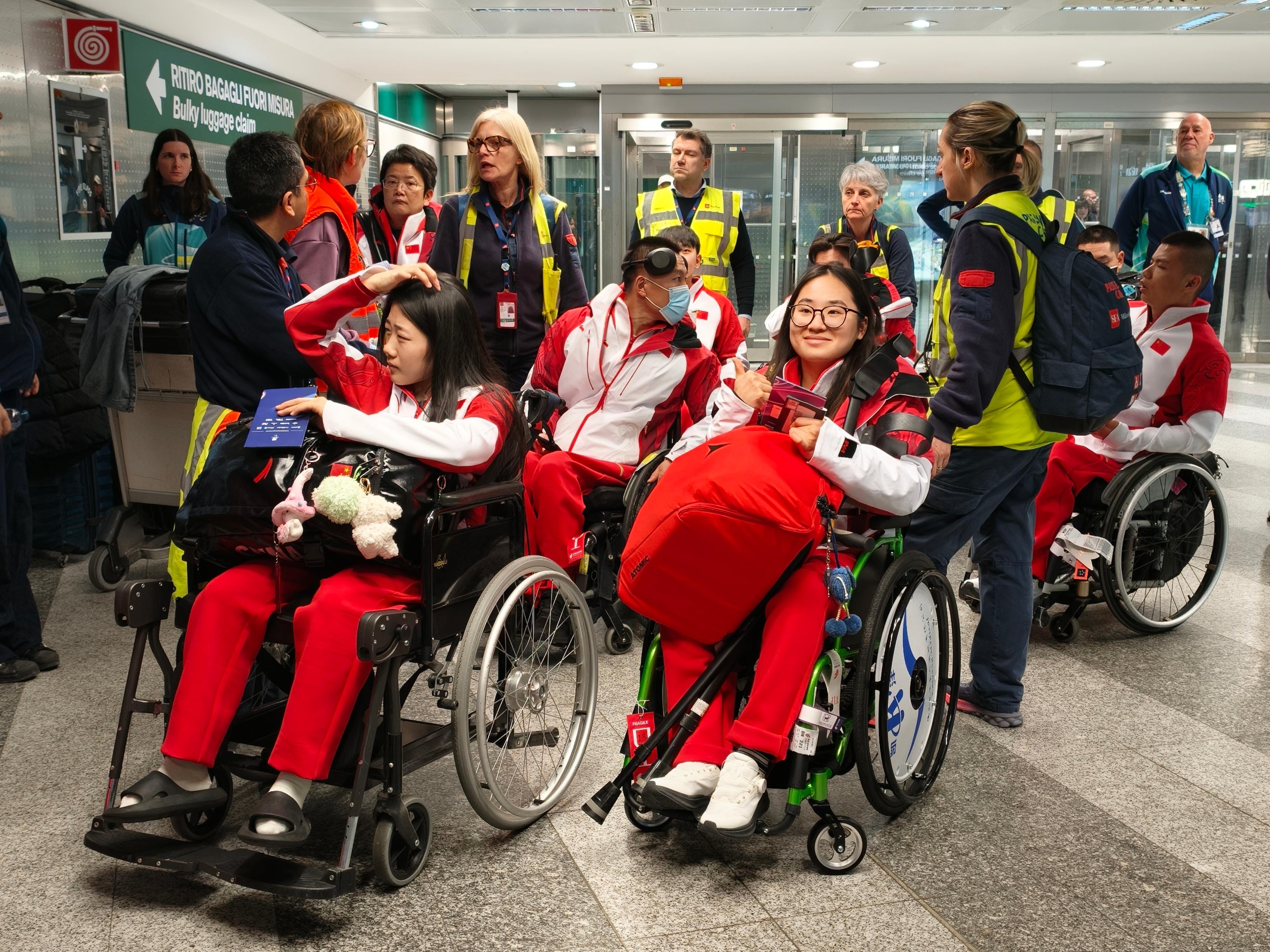中国体育代表团一行抵达米兰。中国残联供图