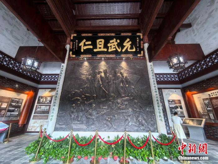 沿着蜿蜒山路行至岳麓山脚,麓山忠烈祠内“铁血忠魂——长沙会战史实简明陈列”,吸引不少游客驻足瞻仰。