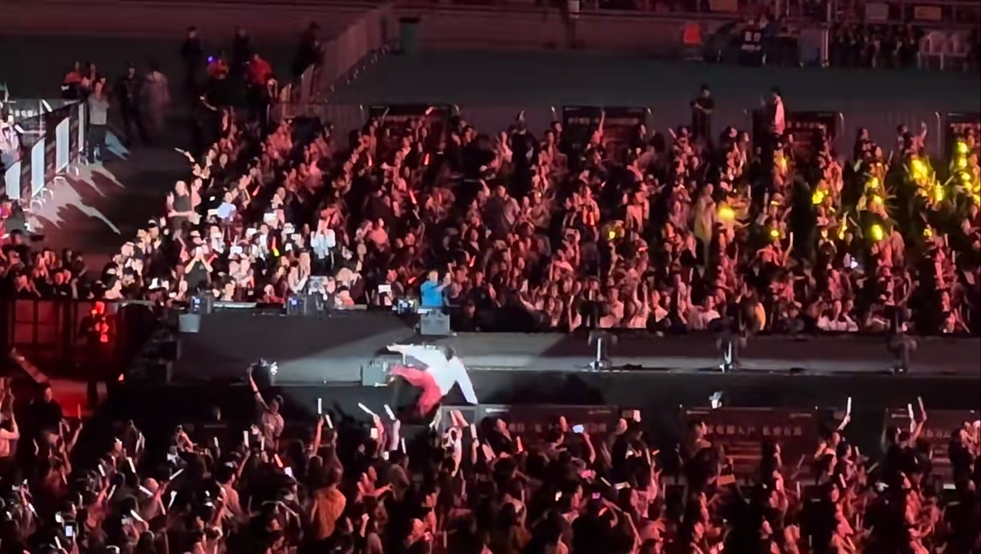 8月22日,鹿晗演唱会在深圳开唱。因身后升降台未及时复位,鹿晗在后退过程中差点踩空,半个脚掌悬于洞口边缘。千钧一发之际,台下工作人员迅速托住其小腿,才避免了一场可能的坠落悲剧。