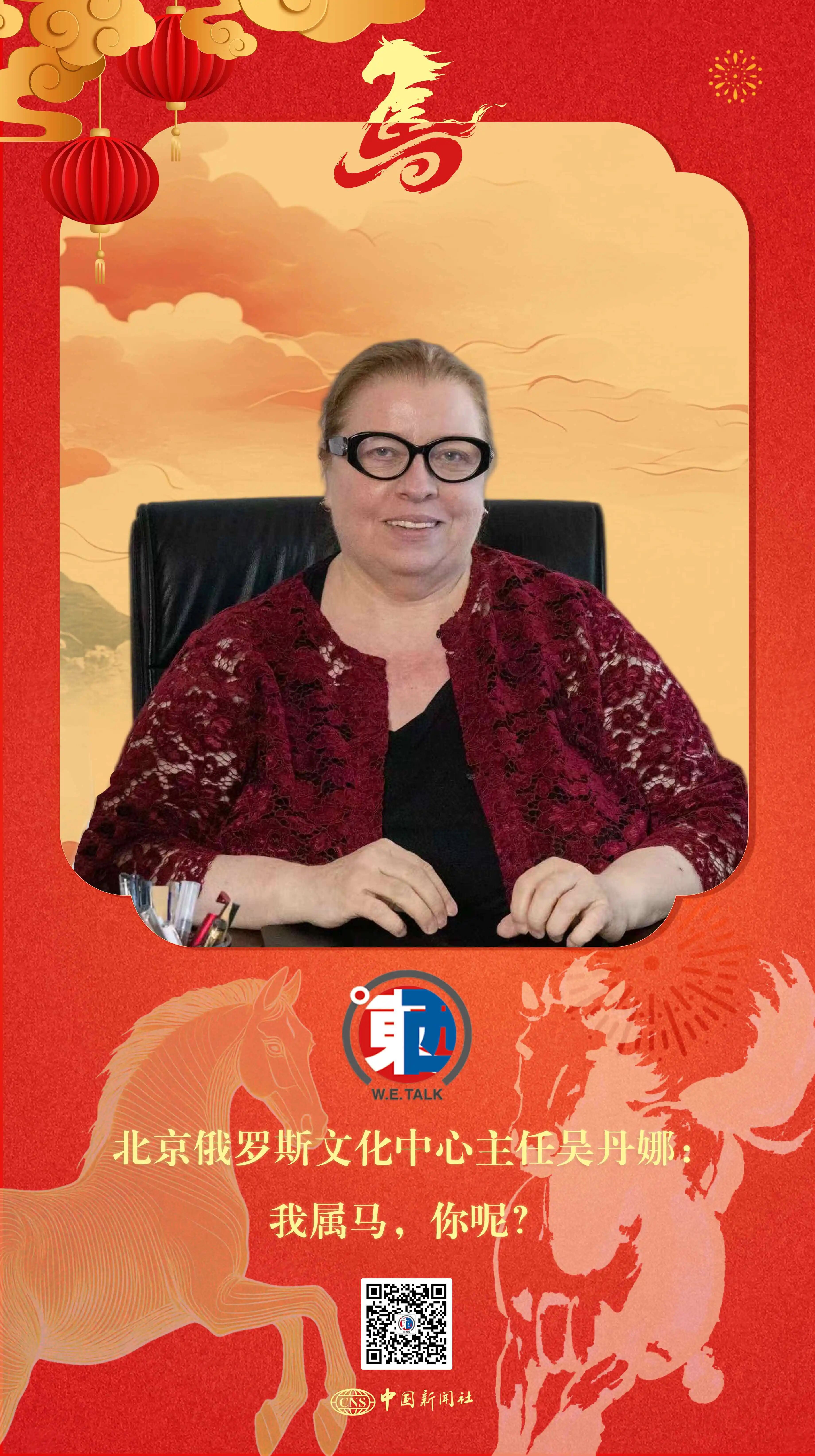 “那今年就是我们的本命年了。”听到有人和她一样也属马,俄罗斯驻华使馆参赞、北京俄罗斯文化中心主任吴丹娜(Tatiana Urzhumtseva)笑着回复道。