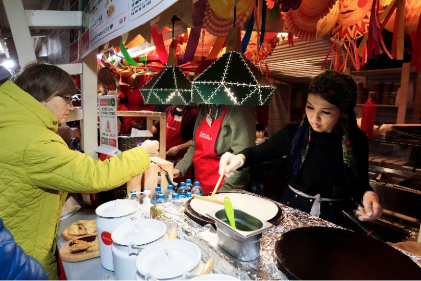 正如中国春节有必备菜肴,在俄罗斯谢肉节一定要吃薄饼。薄饼是太阳的象征,圆圆的、黄黄的、热乎乎的,意味着春天来了。